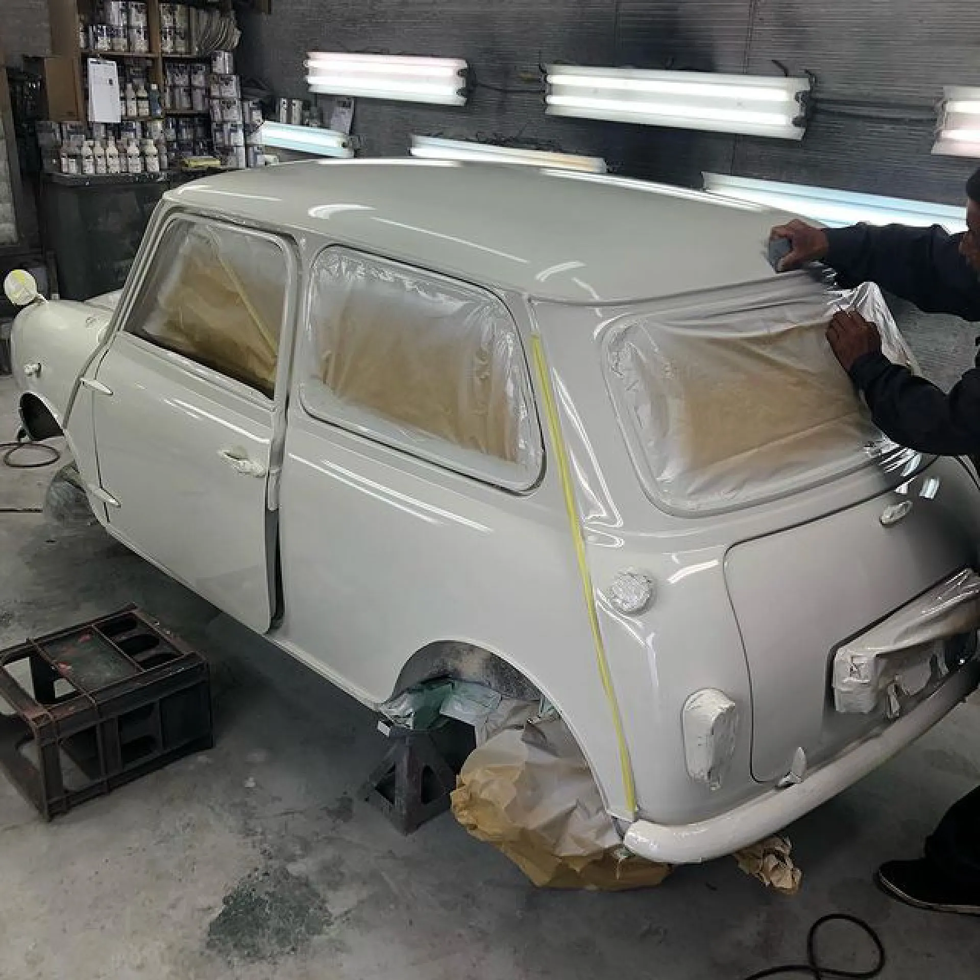 元の白いボディーがやれてしまっていて心機一転、同色で綺麗にしたい!とのご要望だったので、全塗装をご提案させていただきました。